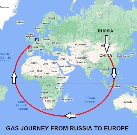 Sancties tegen #Rusland zijn absurd: Russisch gas wordt nu via China per boot als LNG (Liquefied Natural Gas) de halve wereld rond vervoerd om uiteindelijk in #Europa te arriveren maar dan wel 2 of 3x zo duur! U betaalt voor e/ politieke symbolenstrijd… h