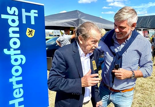 Druk bezochte infostand van het @Hertogfonds op @IJzerwake in #Ieper. #Hertogfonds-voorzitter Filip Dewinter @fdw_vb begroette oa de 98-jarige Prof. Emeritus Alexander Evrard (gastspreker op de #IJzerwake) op onze stand.