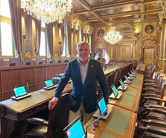Oud (en enig aanwezig) burgemeester Bob Cools leidt me rond in het burgemeesterkabinet nav opening gerestaureerde Antwerps stadhuis… Een échte socialist met een hart voor zijn stad! Goed gelachen met de Romeinse keizerambities van (afwezige) @Bart_DeWever…