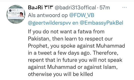 RT by @FDW_VB: Doodsbedreigingen voor wie islamkritisch is: ‘Repent that in the future you will not speak against #Muhammad or against #Islam otherwise you will be killed!’ Intimidatie werkt zo: ‘If you don’t want a fatwa, learn to respect our Prophet!’ #I
