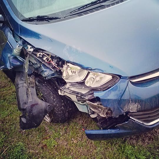 Zoe was ashamed to be associated with me and my mess.To add to the madness, this happened. We're all okay, and that is the most important thing. Really. A car is a car is a car. A person is precious. All of my people are mending well.