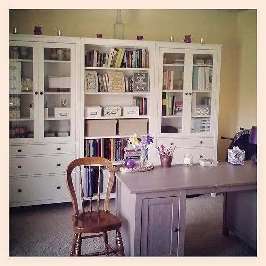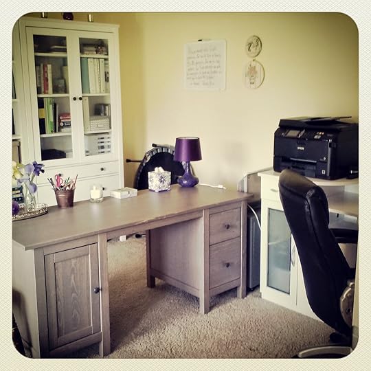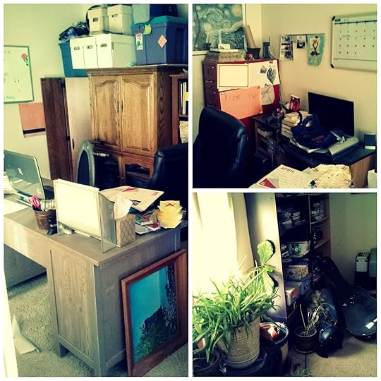 We are once again entering the share circle, my friends. Embrace the closest book to you and repeat after me: I, fellow bookworm, do solemnly promise to refrain from passing judgement upon my fellow bookworm, A.C. Autry, as I see the before photos of her office. I also solemnly promise not to throw cleaning supplies, magazine clippings with organizational tips, or hoity-toity leers in her direction. I understand that she is human and had just finished writing her second book, Rise of the Seer, when these pictures were taken. I support her theory that a good writing day is more valuable than a clean desk. May I suffer the anguish of a dozen paper cuts soaked in lemon juice should a leer creep onto my face or a dust rag accidentally leave my hand and fly in her direction.*