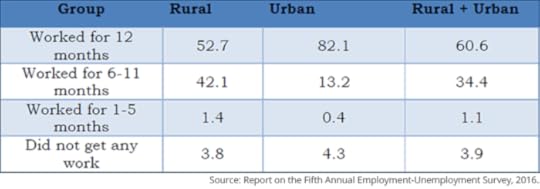 Table 1 clearly tells us that only 60.6% of India’s workforce which is looking for a job all through the year, is able to find one. So, yes Indians may not be unemployed, but they are terribly underemployed. Hence, nearly 40% of Indians looking for a job all through the year are unable to find one. Or two in five Indians who are looking for a job all through the year are unable to find one.