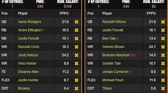 I decided my favorite part of FanDuel or any DFS experience is that I can throw out my entire lineup and put in all new players the following week after a bad week.