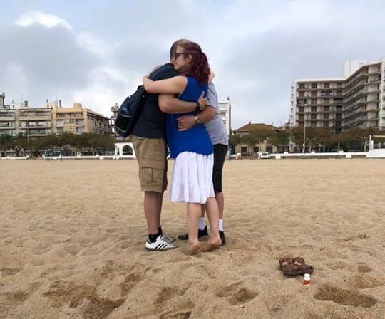 The Carmichaels on the shores of the Mediterranean. The pill bottle next to my sandals contained some of my mom’s ashes, which we released into the sea. Photo by my wonderful stepmom, author Jackie Carmichael.