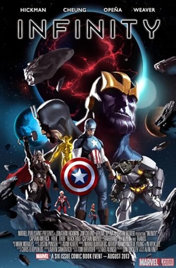 Yep, you've guessed it, despite my almost reading ban on all things Super Hero, I'm reading Marvel's InFiNiTy. It's Awesome!!!! but a word to the wise, if you're a little weak on your Marvel History, you might want to bone-up. :) There's a lot going on in this and plenty of breezed over info-dumps that can easily get you lost—think Hard SciFi. My advice, read it, but take it slow; it's worth it. I mean, damn ***SPOILER*** THANOS has a kid?????