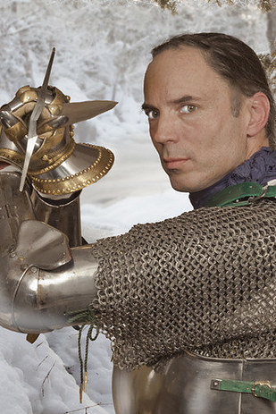 The Duke stood before the Queen's palace. He slipped from his battle-steed to the fresh earth.