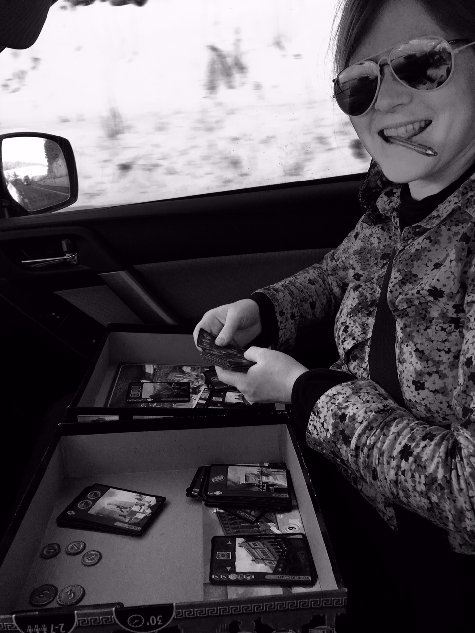 On our way to Florida this week I even figured out a way to play 7 Wonders while sitting in the car. It as a bit of a challenge, but a very fun one. (My sister might of heaved a sigh at me when I informed her that I lost, but hey! I won the next game. And besides, I think that just shows that I have skills in really doing what's best for each team involved.)