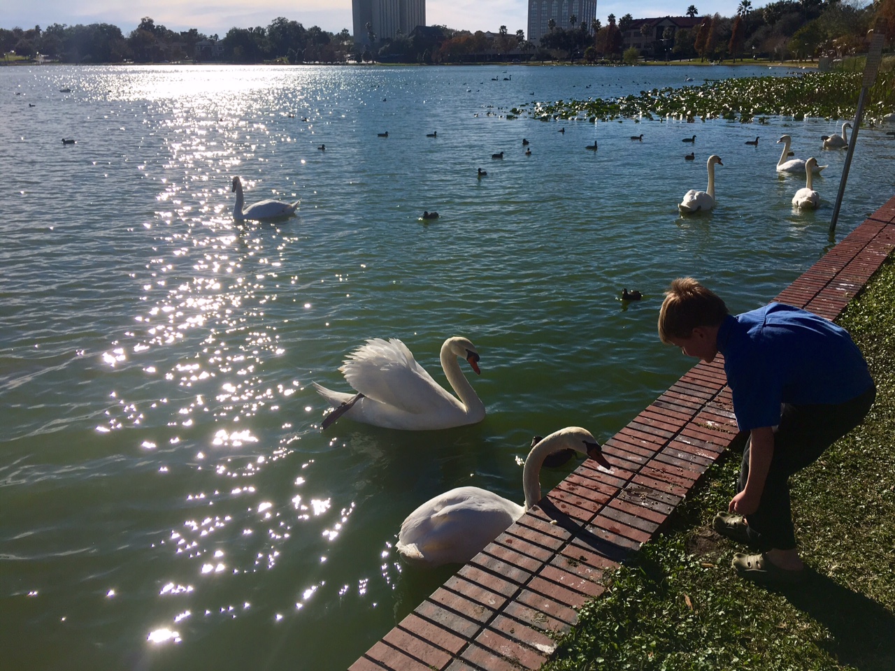 The Sights: Brilliantly bright sunshine, majestic birds, smiling faces, memories being made, green grass, and water lapping slightly under the wake of the swimming swans and ducks.