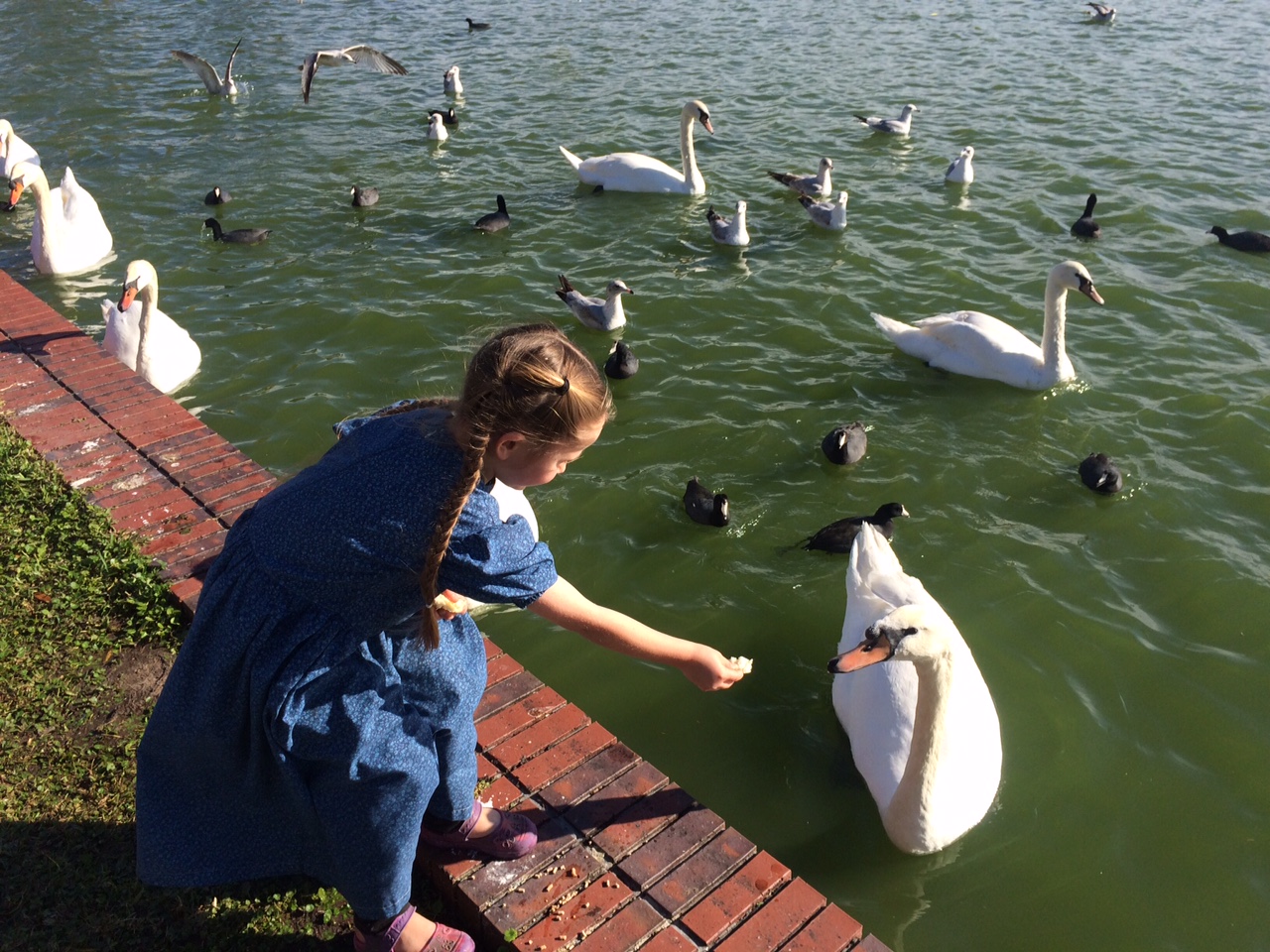 My four-year-old niece was fearless and not only fed the swans, but then proceeded to try and feed the extremely long-beaked birds surrounding us on land. (That might have freaked me out a small amount.)