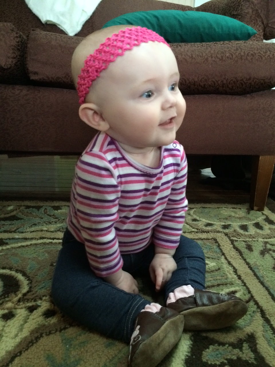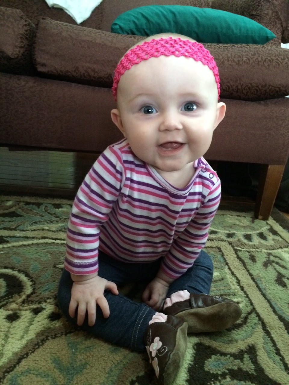 Clara has the most adorable smiles all the time, but mornings are especially smiley. Therefore I might have possibly used up most of my blogging time crawling around on the floor taking dozens of blurry pictures in an effort to capture some of her darling expressions.