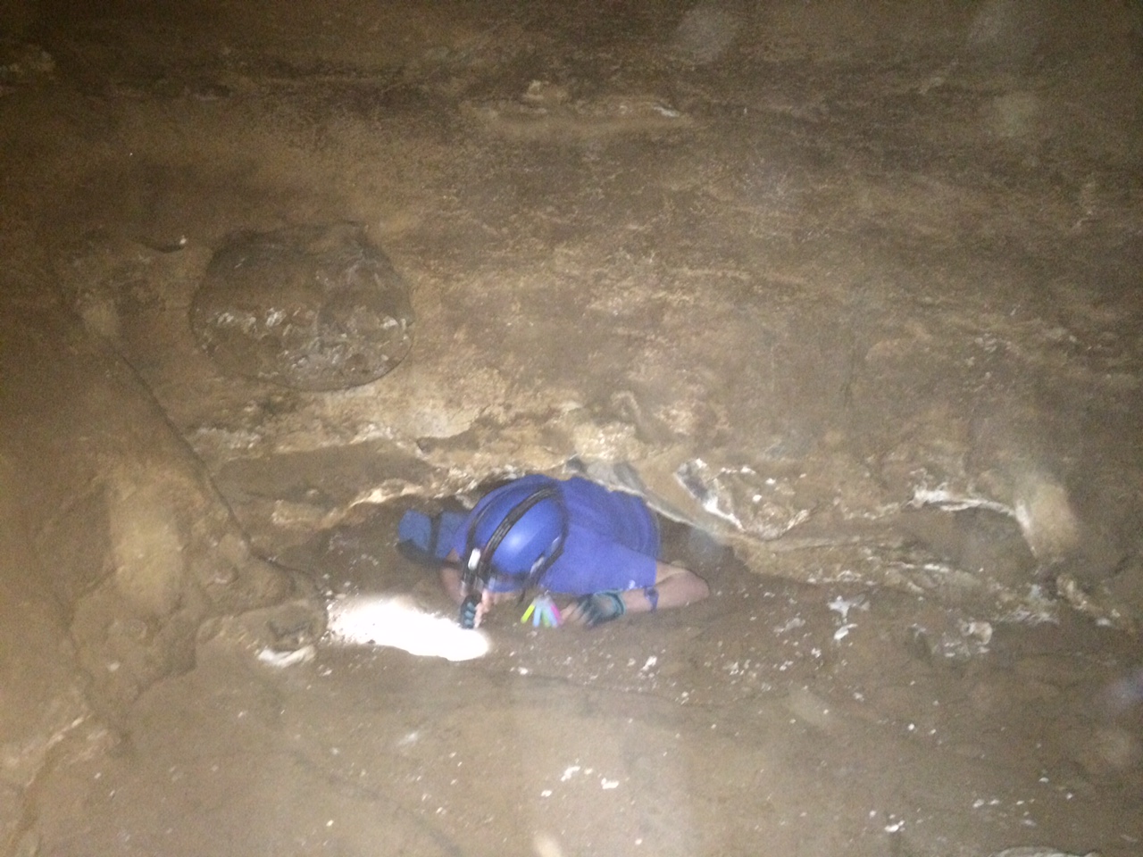 When we get down into the cave it narrows down and even though 68 of us went on the spelunking tour, most of the time I could only see two or three other people because the group spreads out and goes one-by-one because of how small it is.