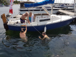 The new boat is a 1972 22′ Canadian Sailcraft {CS} with a swing keel that didn’t quite swing last year. Despite my misgivings after having been spoiled by the Cat, I have to admit, last spring’s sailboat prep was a great family project as we worked together to figure out how to unstick, unravel, and untwine the lines, the keel, and any of the other parts seized by time (luckily none of these parts were on my dad, just his boat).