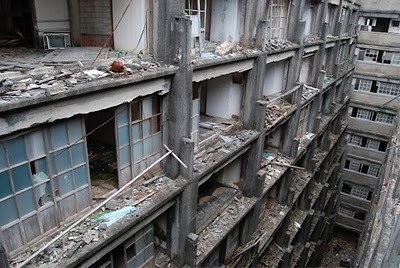 Hashima is, for many ruin fans, the rotting and collapsing grail, the benchmark all other crumbling structures are measured against – and seeing pictures of the place it's easy to see why. Not only is Hashima frighteningly preserved in some places, as if the residents had just stepped out as few minutes before, but it is also, contrarily, spectacularly falling down. Beyond its current awe-inspiring state of decay, the island's dramatic isolation and its bizarre history make it the ruin of ruins.