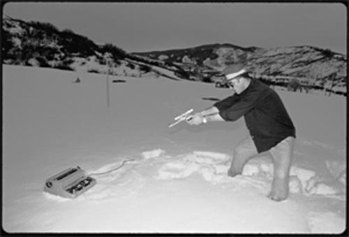 Thompson confronting the object of his contempt - an IBM Selectric (1989)