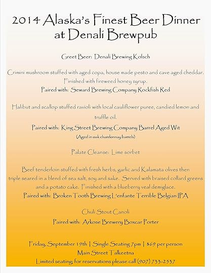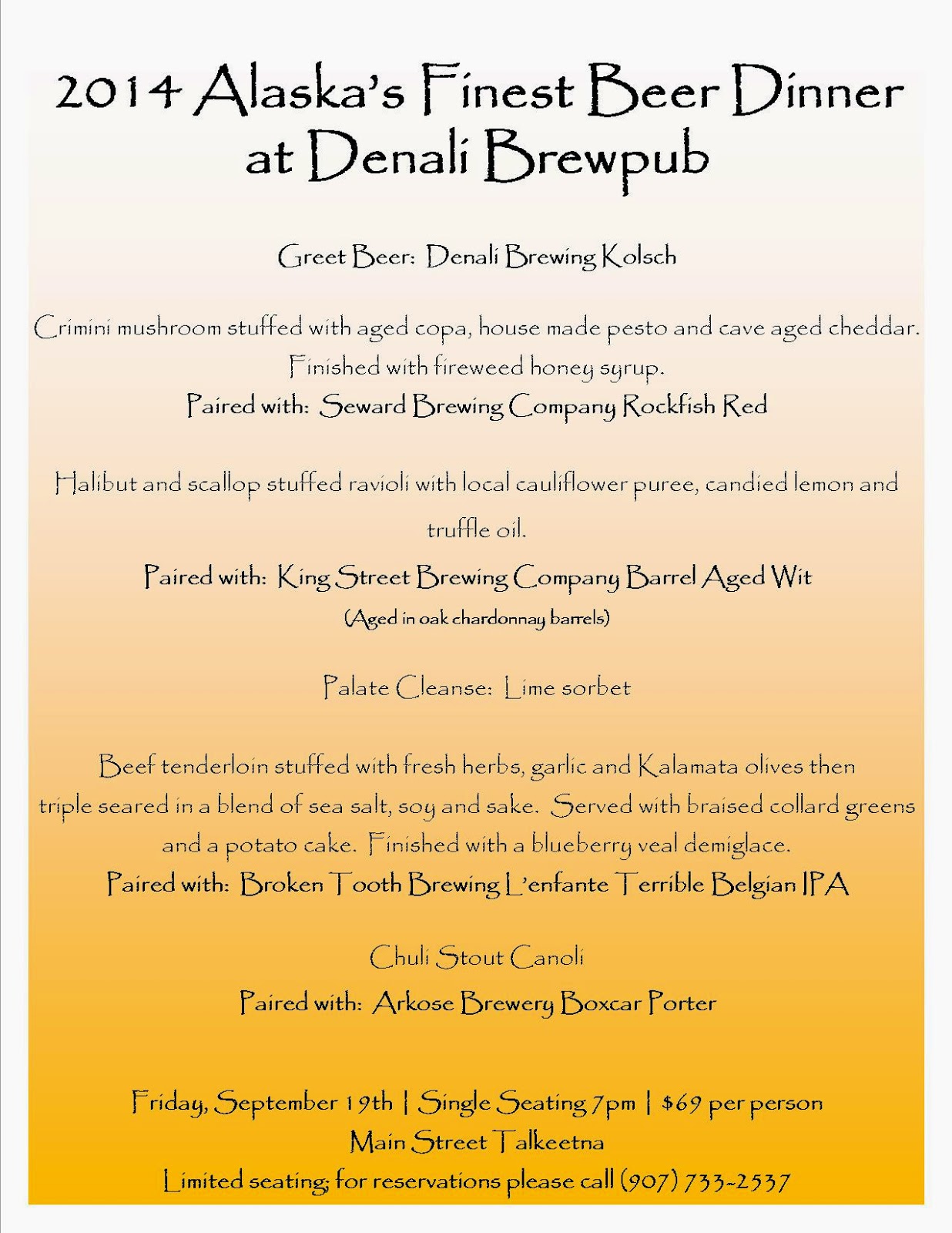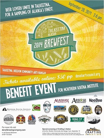 : Saturday, September 20th, from 2 pm to 6 pm at the Don Sheldon Community Arts Hangar in beautiful downtown Talkeetna. Tickets are $50 per person and include a selection of cured meats, fine cheeses, and locally baked breads, besides beer from several of the state's finest breweries. Tickets are available from the Denali Arts Council's website. This is a fest that I really want to attend, but fate keeps conspiring against it. In 2012 it was flooding, and last year I was of of state when it took place, and this year I will be out of state again. Next year for sure!