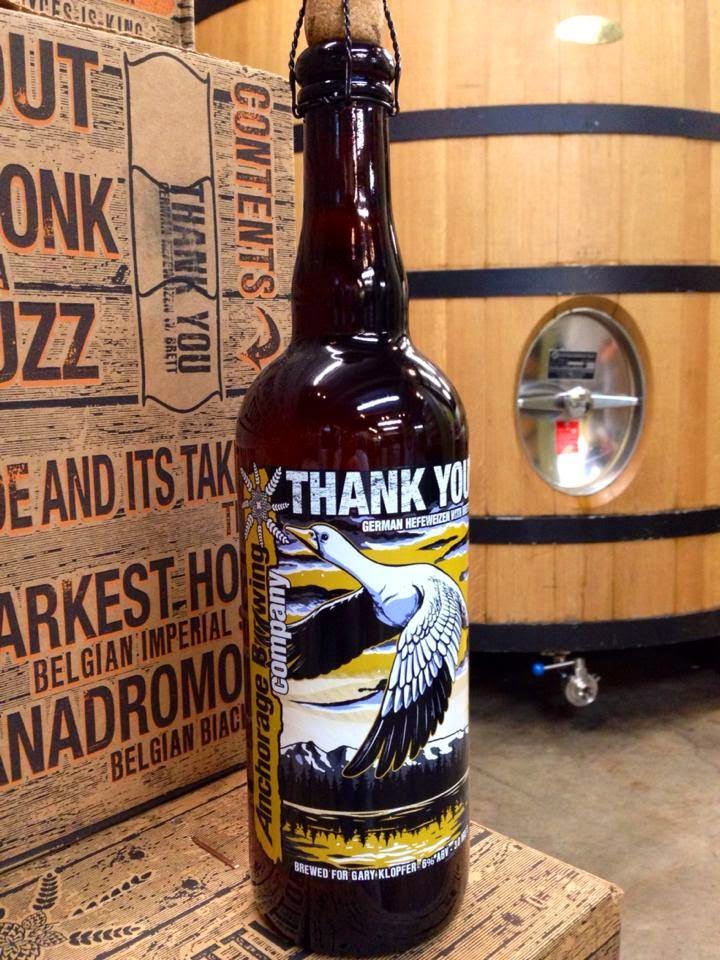 Photo courtesy of Anchorage BrewingAnchorage Brewing Company's Thank You German Hefe w/Brett: The beer poured a crystal clear light straw gold with a nice white head. There were a few of the traditional banana and clove note sin the nose, plus significant Brett funkiness. Carbonation was good, and the beer was lively and refreshing on the palate. I got much more Brett and not much hefeweizen with this brew, but it was quite delicious and an excellent brew for a warm day. 6% ABV, 30 IBUs.