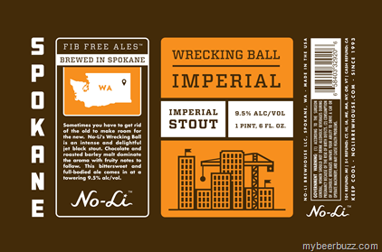 No-Li Brewhouse's Wrecking Ball Imperial Stout: I've heard a lot about this Spokane, WA brewery lately, so I picked this up at Sak Town Liquors on the outskirts of Seward. Keep an eye on Sak Town, as they are int he process of expanding and installing a growler bar! The beer poured almost opaque with ruby highlights and a tan head that left good lacing. The nose was full of black currants and other dark fruits notes, plus some roastiness. The mouthfeel was good and the flavor profile was classic imperial stout: Roast malt, a hint of alcohol, dark chocolate, a hint of tobacco, falling away slowly to a long, deep finish. Very nice. 9.5% ABV, 100 IBUs.