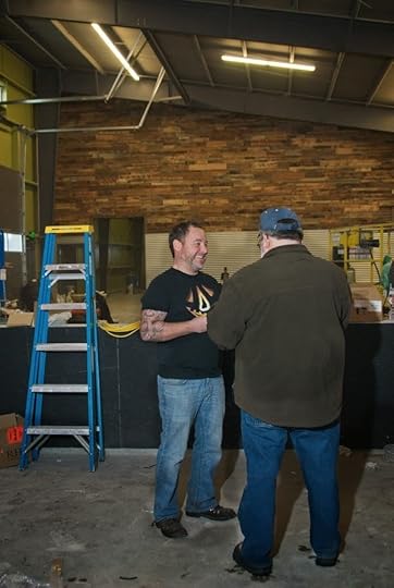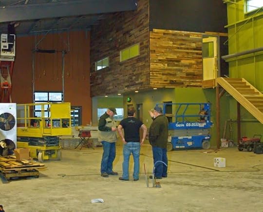 Once completed, patrons will be able to sit in the Tasting Room and gaze at the ten huge wooden tanks in two columns of five, flanking the brewhouse, which will be positioned against the back wall, the top portion of which is reclaimed wood. The room on the left behind the brewhouse will house grain storage and bottle conditioning, while the one on the right has enough space for about 800 barrels. In addition, Gabe has announced that his sister Heather has returned to Alaska and will be running the Tasting Room.
