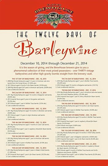 Tonight at Glacier BrewHouse is the Winter Warmer Dinner . Tickets are $80 all-inclusive. I don't know if there are any seats left, so call for reservations ASAP. You can see the entire menu of food and beer here. Even more exciting, tomorrow begins Glacier's annual Twelve Days of Barleywine . Here's the daily menu: