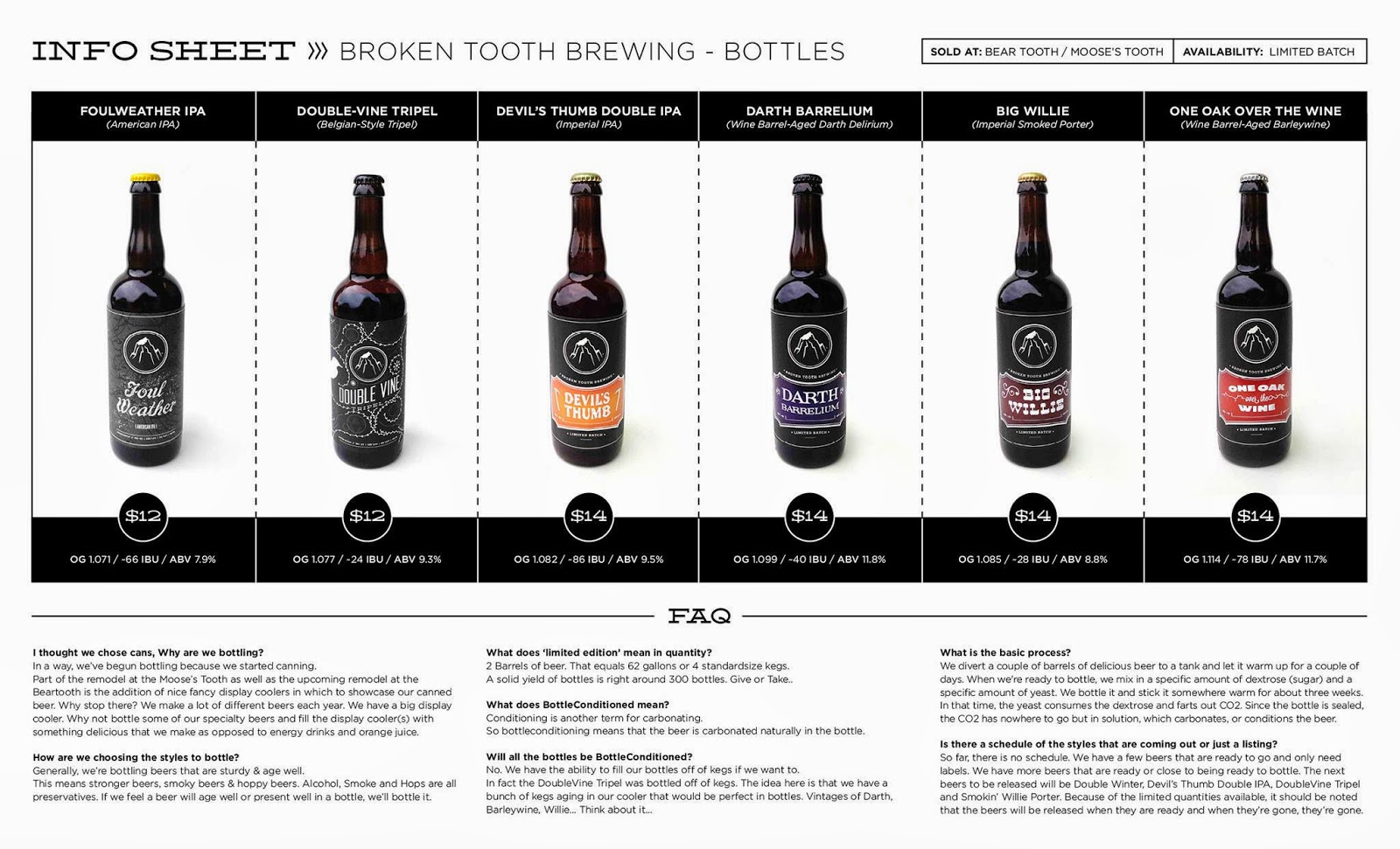 Tyler Jones of Broken Tooth Brewing was kind enough to give me the head's up about two new releases on tap at the Moose's Tooth , but I completely forgot to include the info in my latest blog.