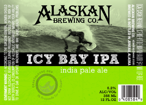 Click to enlargeAlaskan Brewing has announced a change in both the label and the recipe of their IPA. First released in 2007, Alaskan's IPA will now be called Icy Bay IPA and the label will feature a photograph of a surfer on that body of water, rather than a drawing. Here it is: