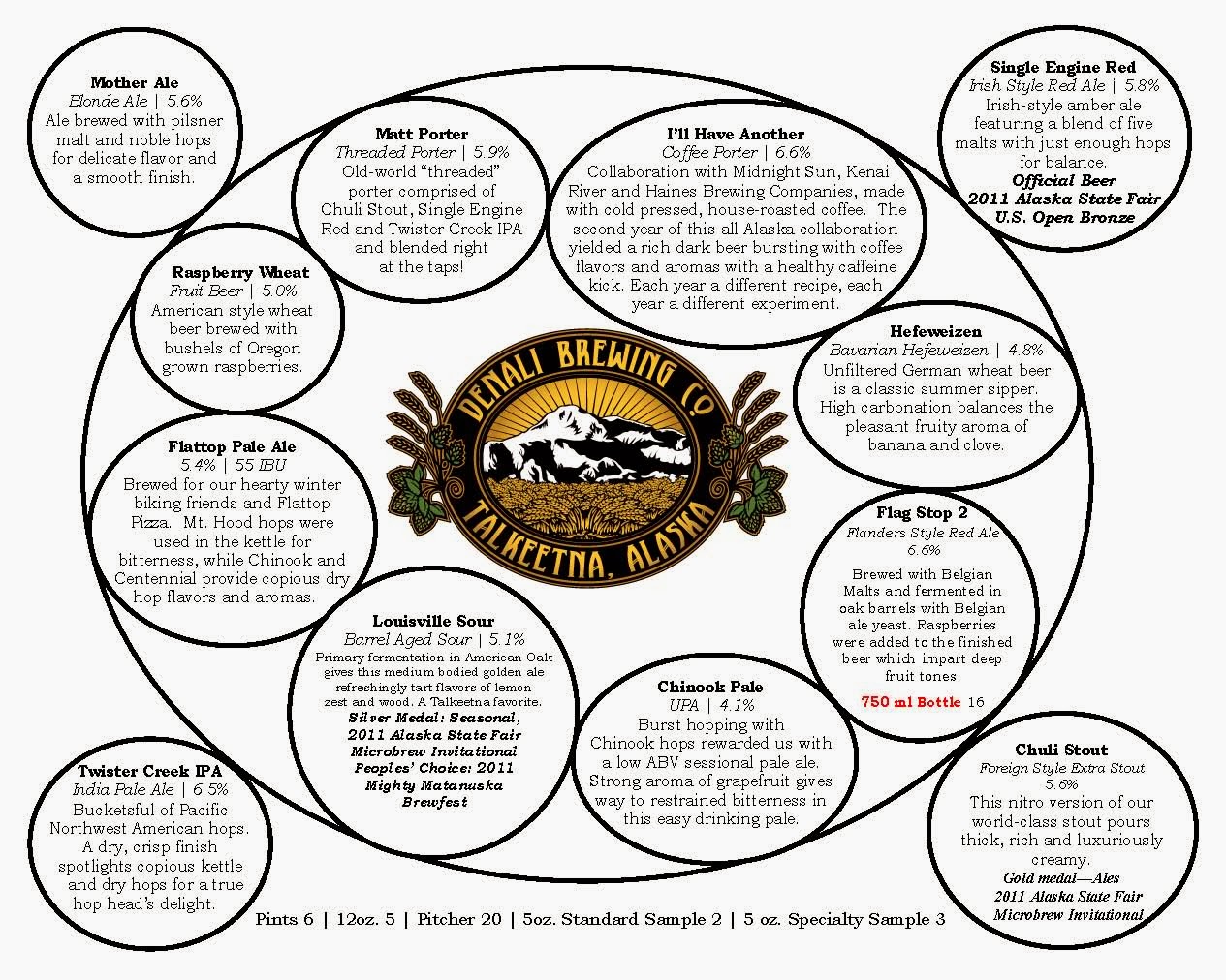 49th State Brewing Company in Healy has announced that they will open for business this year on April 25th, which is earlier than last year. Now word yet on what they will be offering, though several of their Hibernation series should top the list. No date yet for the Seward Brewing Company's opening. I understand that it is under new management, but I've been unable so far to contact the new owner to get any details on his plans for 2014. I'll keep working on it.