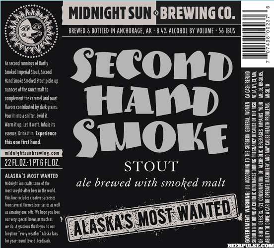 Midnight Sun's Second Hand Smoke Stout: Brewed from the second runnings of MSBC’s popular Barfly Smoked Imperial Stout, this beer pours opaque with a slight brown head. The aroma is rich with chocolate, coffee and smoke. On the palate, the beers is thick and chewy, a pleasing blend of roasted flavors and smokiness. I had tasted this on draft back in May, but this was from the bottle. 8.4% ABV, 56 IBUs.Well, that about it for now. Look for more reviews next week, as I should be back on a regular blogging schedule, at least for a bit.