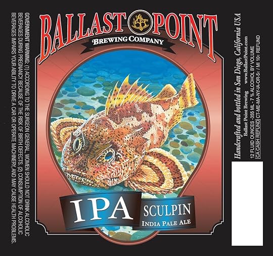 Sculpin IPA from Ballast Point Brewing in San Diego: Another IPA with an excellent reputation from a brewery that we don't get here in Alaska. It pours a clear gold with a big white head that leaves good lacing. The aroma is full of tropical fruit notes, like mangoes. There's good up front bitterness, followed by excellent hop flavors and aroma, as well as more fruit flavors. An unusual but excellent IPA, well-deserving its reputation. 7% ABV.