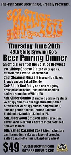 I also mentioned the beer dinner taking place at 49th State Brewing Company next Wednesday. Here's the menu for that event: