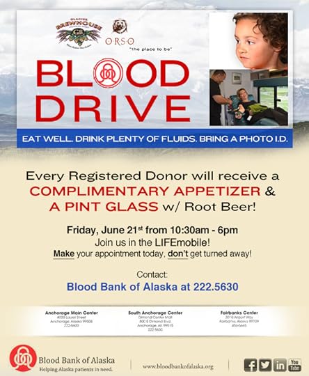 Glacier BrewHouse is hosting another blood drive next Friday, June 21. They're offering a free appetizer and a pint glass (filled with root beer) to every donor. Here's the flier for that:
