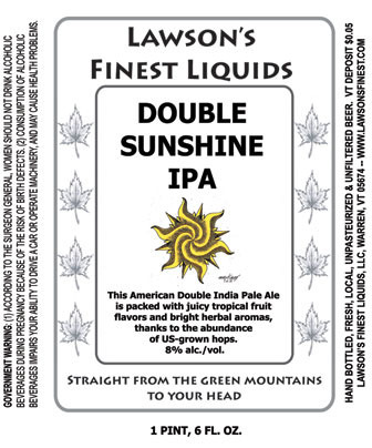 We'll start with some beers from Lawson's Finest Liquids , a tiny craft brewery in Warren, Vermont. I'd had a slight acquaintance with their beers before, thanks to picking up a collaboration beer they did with The Bruery, Acer Quercus (see my 6/14/2012 review). I was thoroughly impressed by it, so I was eager to try more of their stuff. I was able to get three different beers from them.