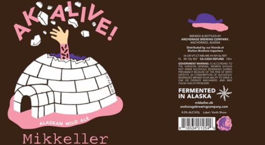The second beer is technically a beer from Mikkeller, rather than Anchorage Brewing Company, albeit that it was brewed and bottled at ABC: AK Alive Alaskan Wild Ale. It poured a deep orange-gold with a big white head. The aroma has some spicy yeast notes and some hops; nothing overwhelming. Great carbonation, light mouthfeel. There's good hoppiness on the attack, then some yeast spiciness on the back end, falling away to a nice, long finish. Extremely drinkable; you'd never guess this brew is 8% ABV. Be a wonderful beer to sample sitting in the summer sunshine on my patio.