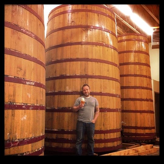 Gabe & new foudres (borrowed from ABC's Facebook page)plenty of new wood, as in eight new foudres of varying capacities. There are two holding 110 barrels, four holding 60 barrels, and two holding 45 barrels. Also, for the first time, Gabe's forest of wooden vessels in expanding beyond his Brett Cave beneath Sleeping Lady. Only four of these new foudres will be going into the cave; the rest are going into a new warehouse, where they will be used exclusively for sour beer. Besides the new foudres, Gabe has received eight 500-liter barrels from the Laphroig Distillery, located on the island of Islay, part of the Inner Hebrides of Scotland, which had been used to age whisky for 30 years. Gabe says the first beer that's going in them will be a "big ass Imperial Stout". He's also gotten sixteen 500-liter red wine casks. All told, this represents an additional 617 barrels or 19,133 gallons of additional fermentation space. I'm really looking forward to all the great new brews Gabe will be able to make with these new vessels.