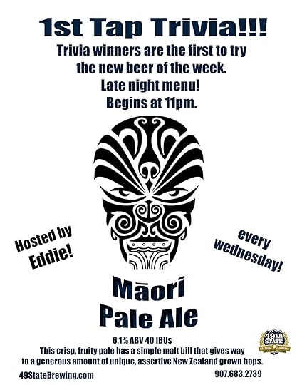 49th State Brewing in Healy has a new Wednesday night trivia contest, where the winners get to be the first ones to taste a new beer. Here's the flyer for it, with details on the new beer, Maori Pale Ale: