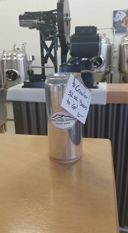 Grace Ridge Brewing in Homer now has a crowler machine, so you can get its beers to go in 32 oz. cans, filled to order at the brewery.