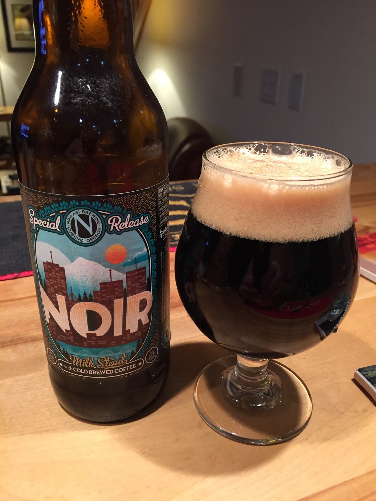 Ninkasi Brewing's Noir Milk Stout: I've always been partial to this style, to the point of always keeping my home-brewed version on hand for my wife to cook with. Ninkasi's version pours dark with semi-translucent ruby highlights and a nice mocha-colored head. The nose is mainly sweet notes from the malt and lactose. The carbonation was good and the mouthfeel was light to medium. The flavor profile was a mix of the sweet malt notes and the coffee flavors, in a very smooth blend. Overall, a delicious beer and a worthy take on the style. 7% ABV, 60 IBUs.