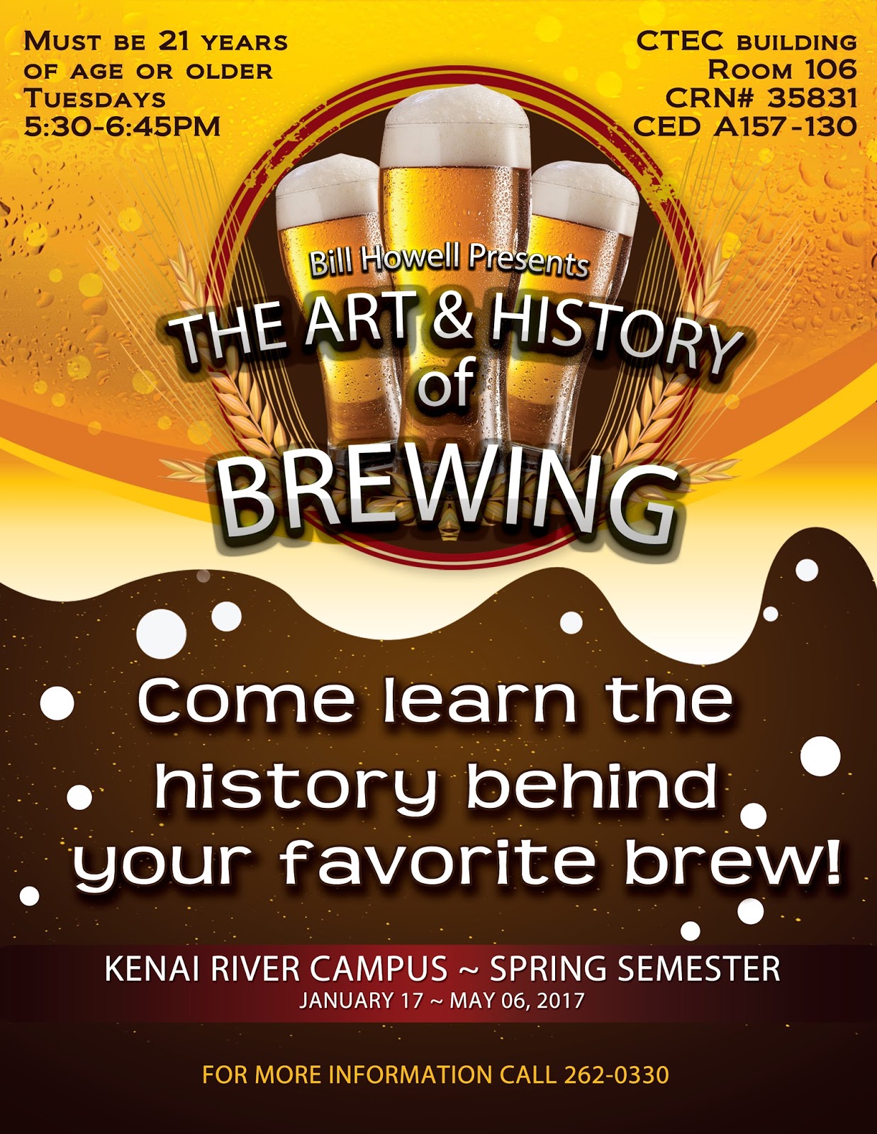Finally, if you're looking for a gift for yourself or someone else, consider the gift of knowledge. I'll be teaching my beer class, CED A157 The Art & History of Brewing, again during the spring semester at Kenai Peninsula College. We meet once a week, on Tuesdays from 5:30 to 6:45 pm, with the first class on January. We cover lots of topics and taste beer in every class. If you've always wanted to learn more about craft beer, here's your chance.