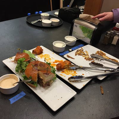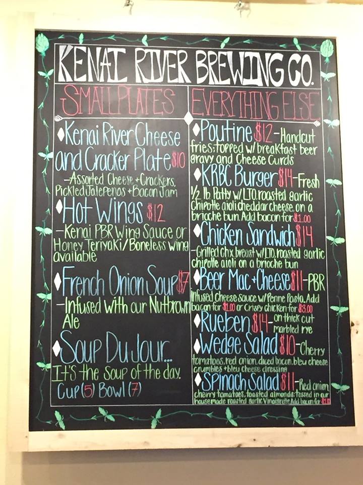 Speaking of local breweries, my wife and I stopped in at Kenai River Brewing yesterday (Sunday) evening to try some samples of the new menu for its tap room. Owner Doug Hogue told me that they are just about ready to open the kitchen to the public. The food will likely start flowing tomorrow (11/29), or later this week at the latest. It looks like the menu will focus on classic pub grub. We tasted chicken wings (two flavors: spicy and honey teriyaki), hamburgers, reuben sandwiches, mac & cheese, and french fries. There was also a salad, but we didn't have any of that. Here's a quick photo that I snapped of some of the food on offer:
