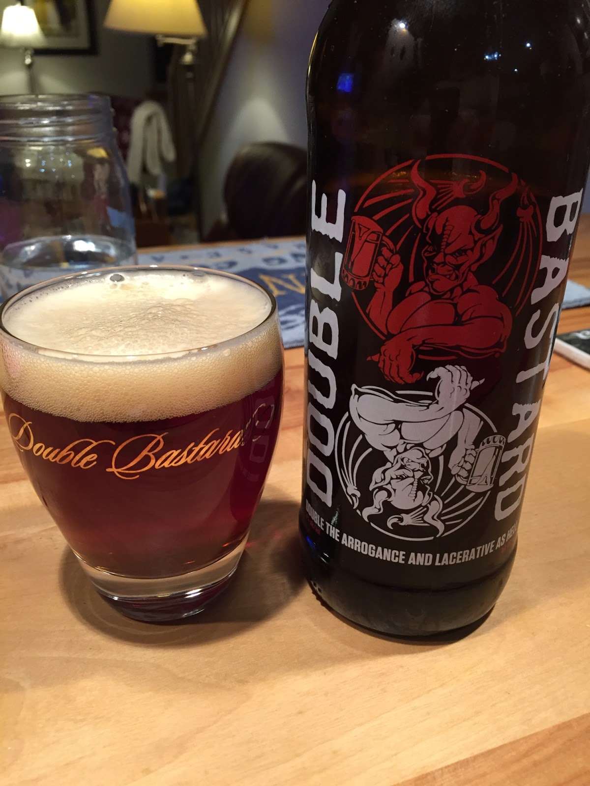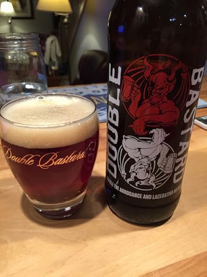 Stone Brewing's Double Bastard: This beer is an old friend, but one I've never reviewed before. It poured a clear, dark honey color, with a persistent cream-colored head. The aroma had notes of toffee and plenty of American hops. Carbonation was good and the mouthfeel was medium. On the palate, there was a nice bitter attack, followed by lots of deep malt flavor, and then some alcohol warmth on the long finish. A classic American barley wine, perfect for the season. 11% ABV.