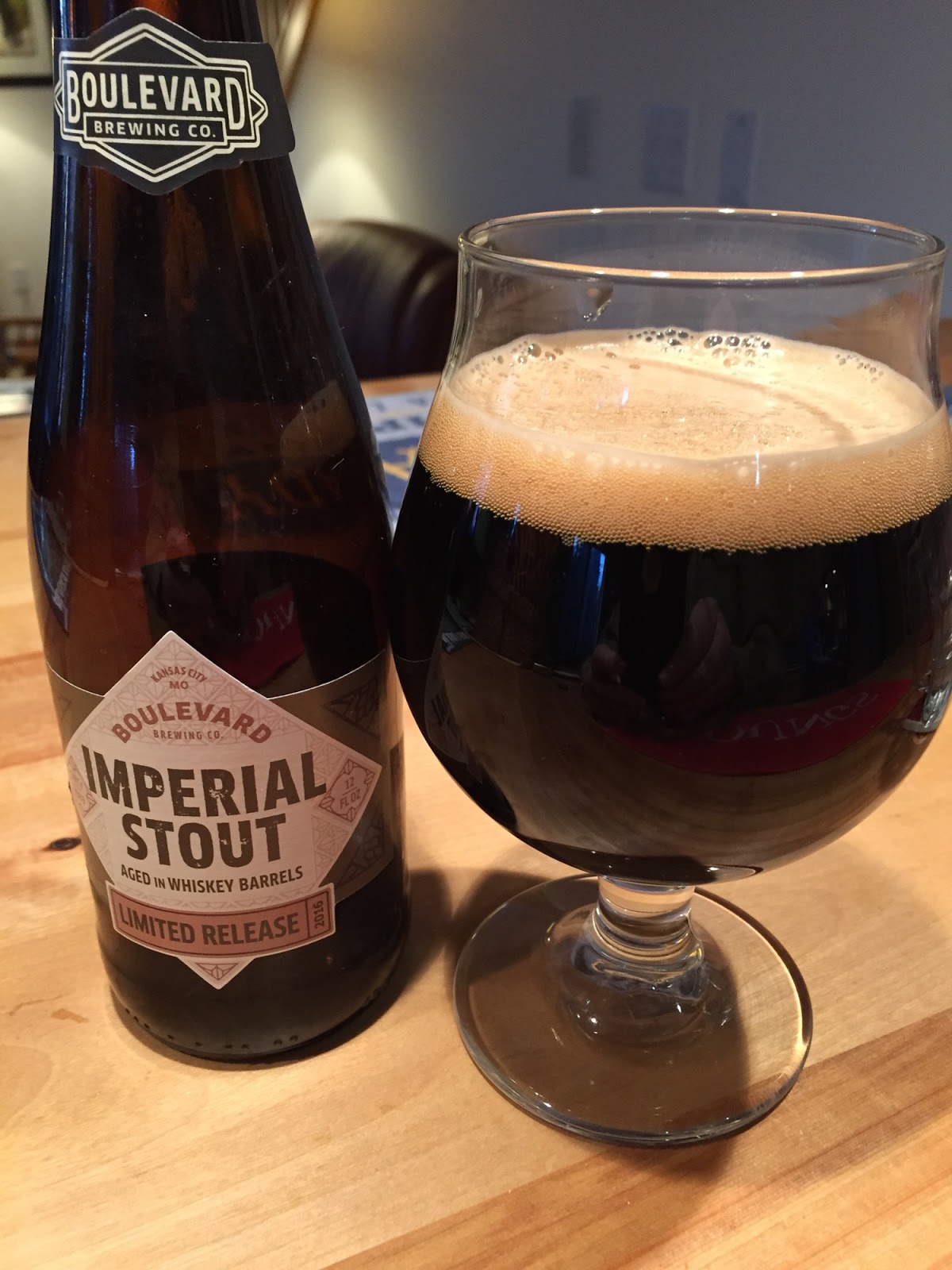 Boulevard Brewing Company's Imperial Stout, 2016-vintage: I've always been impressed with the beers coming out of Boulevard Brewing, and this one was no exception. It poured opaque with a mocha-colored head. The aroma was of roasted malt and some subtle whiskey notes. Carbonation was good and the mouthfeel was medium. The flavor profile was mostly nice roasted malt notes, with the whiskey barrel-aging making a very subtle contribution, before the beer turns just the least bit sweet on the finish. An excellent beer, subtler than MSBC's Berserker, but equally delicious. 11% ABV, 63 IBUs.