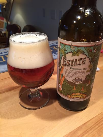 Sierra Nevada Brewing's Estate Homegrown IPA: All the barley and hops for this beer were produced in Chico, CA, from the Sierra Nevada complex. It poured a clear, very pretty copper color with a big, off-white head that left good lace. The aroma was of American hops, primarily Cascades. Carbonation was excellent, mouthfeel was light. There was a nice initial bitter attack, then hop flavor and aroma, but the beer still maintained excellent balance. 6.7% ABV, 67 IBUs.