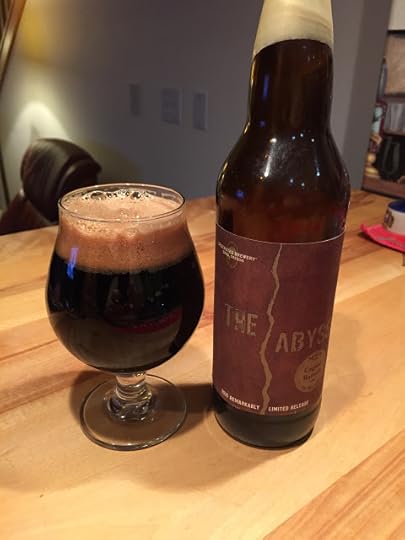Deschutes Brewing's The Abyss Aged in Cognac Barrels (2015): I pulled this beauty out of my cellar on New Year's Day; it had a "best after" date of 12/18/2016. It poured opaque with a tan head. The nose was a pleasing blend of cognac and coffee notes. Carbonation was good and the mouthfeel was medium to heavy. There were strong notes of chocolate, coffee, molasses, plus well-incorporated cognac notes. The finish was long and warming. This beer demonstrates that aging in used cognac barrels suits big imperial stouts and barley wines very well; I'm disappointed that I was only able to score one bottle. 12% ABV.