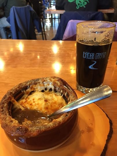 I stopped in for lunch last week at Kenai River Brewing in Soldotna; the food from its new kitchen continues to be exceptional. I had the French Onion Soup (pictured below) which was perfect for such a cold day, then followed it up with that day's special, a hearty meatloaf sandwich. If you haven't eaten there yet, you are really missing out.