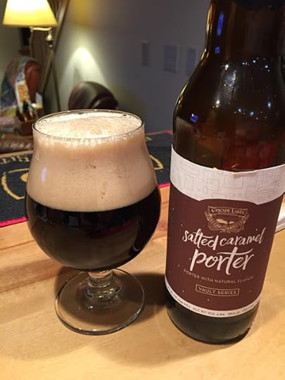Cascade Lakes Brewing's Salted Caramel Porter: This brewery is located in Redmond, Oregon. The beer poured dark with ruby highlights and a big, cream-colored head. The aroma was of caramel and roasted malt. Carbonation was good, but I thought it was a bit thin on the palate. The flavor profile was of caramel, coffee, & cocoa; good but falling off rapidly, so that there was little finish. Not a bad beer, but one that needs more "bottom" as the Brits would say. 5.8% ABV, 37 IBUs.