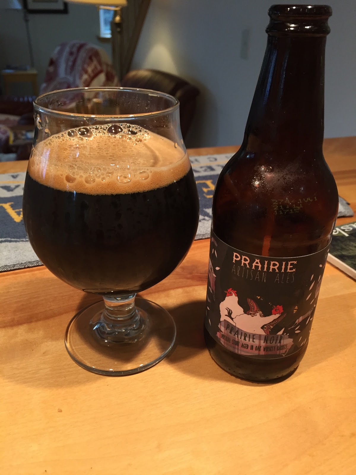 Black Raven Brewing's Pour Les Oiseaux Saison: We've been getting more and more beers here in Alaska from this brewery in Remonds, WA. This one is a saison dosed with brett. It poured a hazy gold with a small white head that dissipated to a collar. The nose has some hints of brett funk along with light citrus notes. Carbonation was good and the mouthfeel was light. On the palate there was oak, brett funk, and some moderate bitterness, that fell away to a nice , long finish. A nice beer now, but I'm very curious as to what 6 to 12 months in the cellar will allow the brett to do to it. 7.2% ABV.