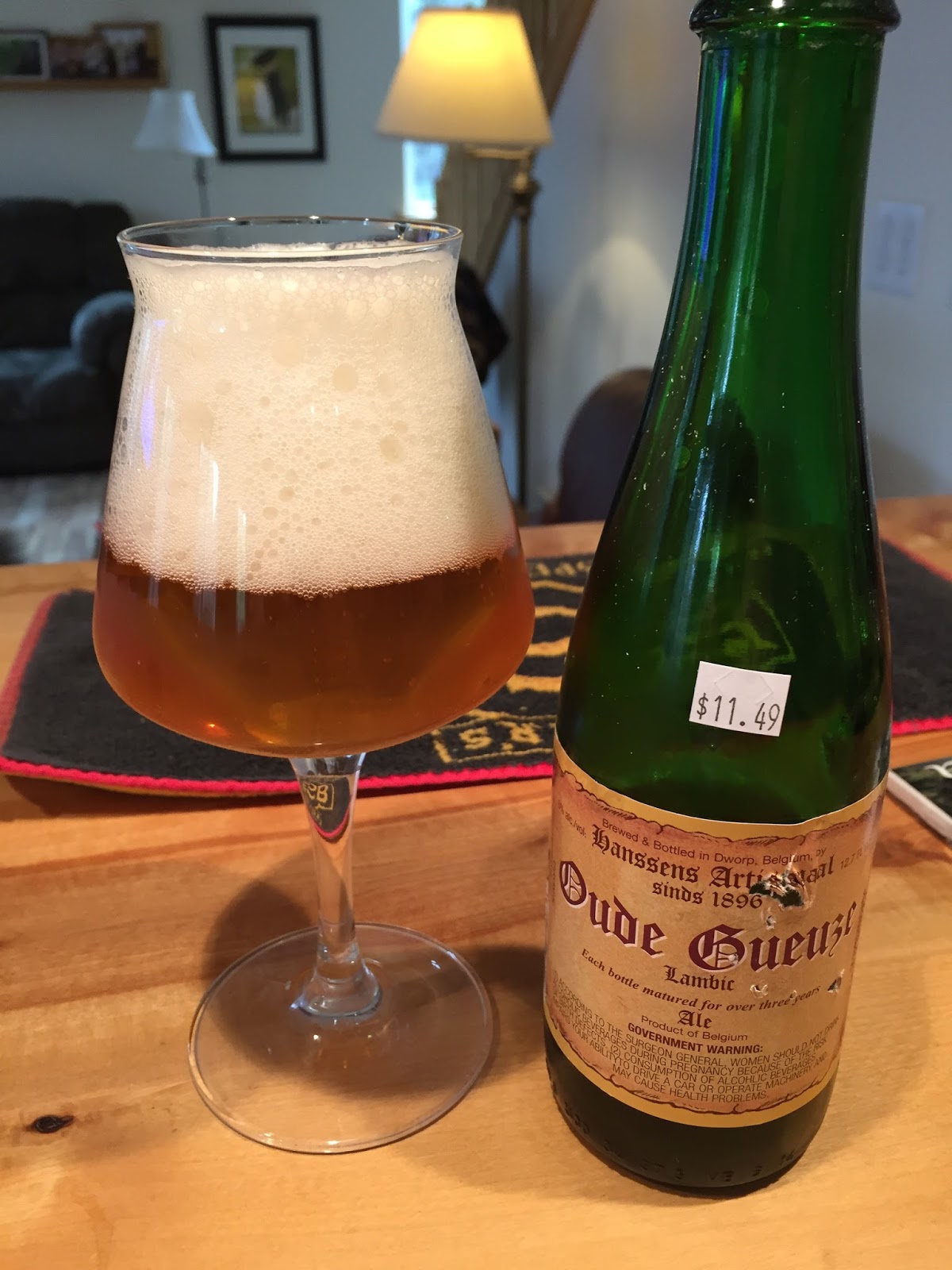 Hanssens Artisanal's Oude Gueuze Lambic: I tried this beer a few years ago, but blending lambics is quite an art, so I decided to try it again. It poured a slightly cloudy gold with a big white head. The nose had the tart sourness you expect in a good gueuze, with some brett funk as well. Carbonation was good and the mouthfeel was light and effervescent. There was nice tartness up front, followed by light notes of brett funk, falling away to a long finish. There are few things better than a good, well-balanced gueuze, and this certainly was one. 6% ABV.