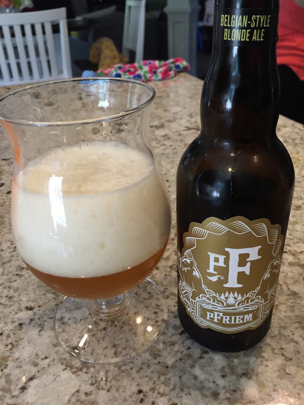 PFriem Family Brewing's Belgian Strong Blonde Ale: It poured a clear gold with a huge white head. The aroma had both fruity and spicy notes from the Belgian yeast used. Carbonation was excellent, and the mouthfeel was good. On the palate there were some fruity notes, plus nice hop bitterness, very similar to Duvel, the classic example of this style. Overall, a very nice beer. 7.5% ABV, 30 IBUs.