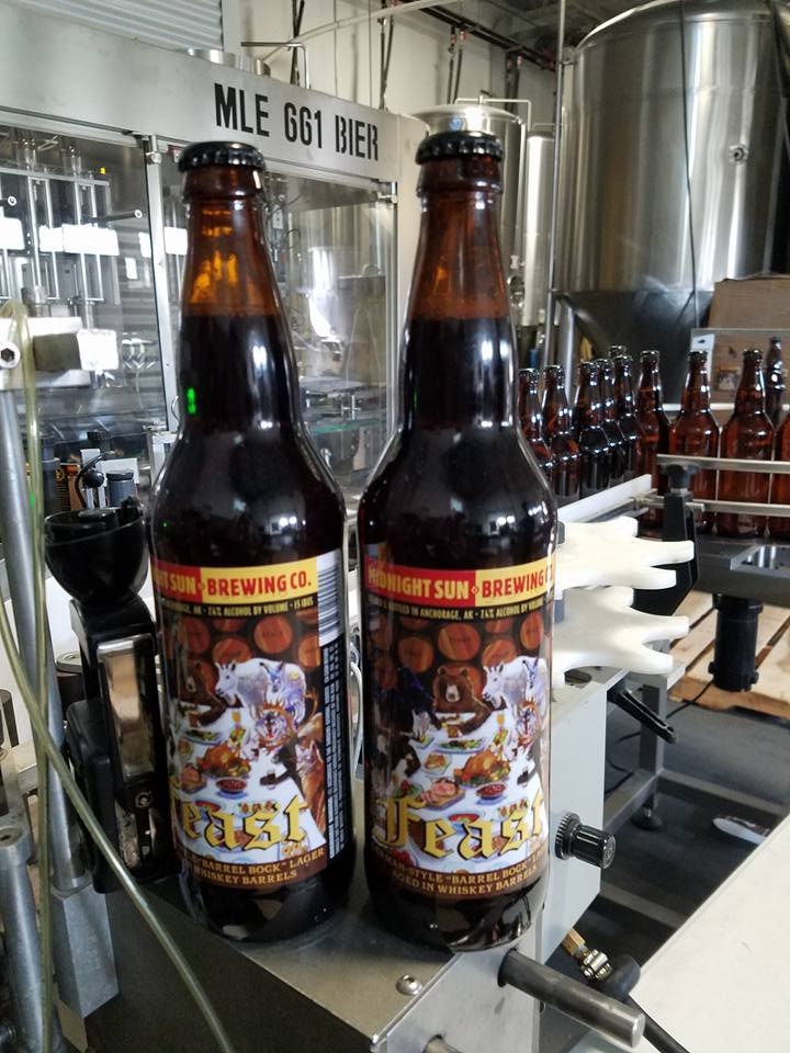 Midnight Sun Brewing has a new brew called Feast, brewed by Chef Chris Hilliard and local artist Scott Clendaniel. It's a bock that been aged in whiskey barrels. Here's a photo of the label.