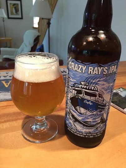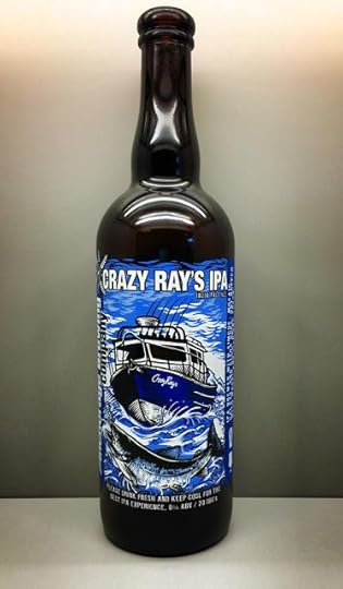 Anchorage Brewing's Crazy Ray's IPA: It poured a clear gold with a nice white head. The nose had lots of citrus and tropical fruit hop notes. Carbonation was good and the mouthfeel was light. Up front bitterness seems moderate, followed by lots of citrus flavor and aroma. A nice, workmanlike take on an American IPA. 8% ABV, 70 IBUs.